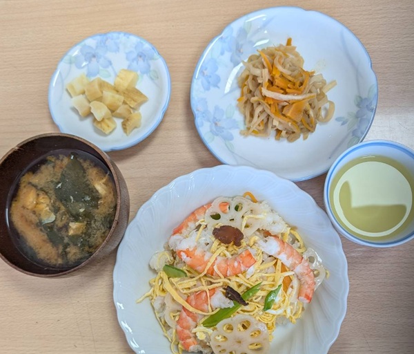 3月24日■テーマ:ちらし寿司 切り干し大根の煮物 若芽と油揚げの味噌汁 沢庵