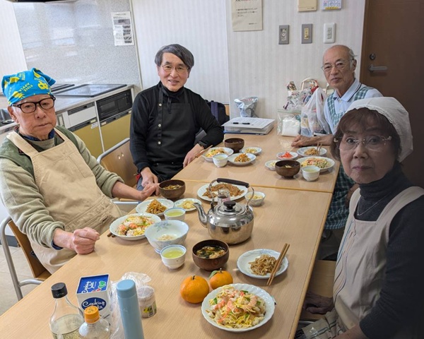< 調理風景 (撮影:中野美明様) 料理 (撮影:中野美明様) 会食風景 (撮影:中野美明様) 令和 7年