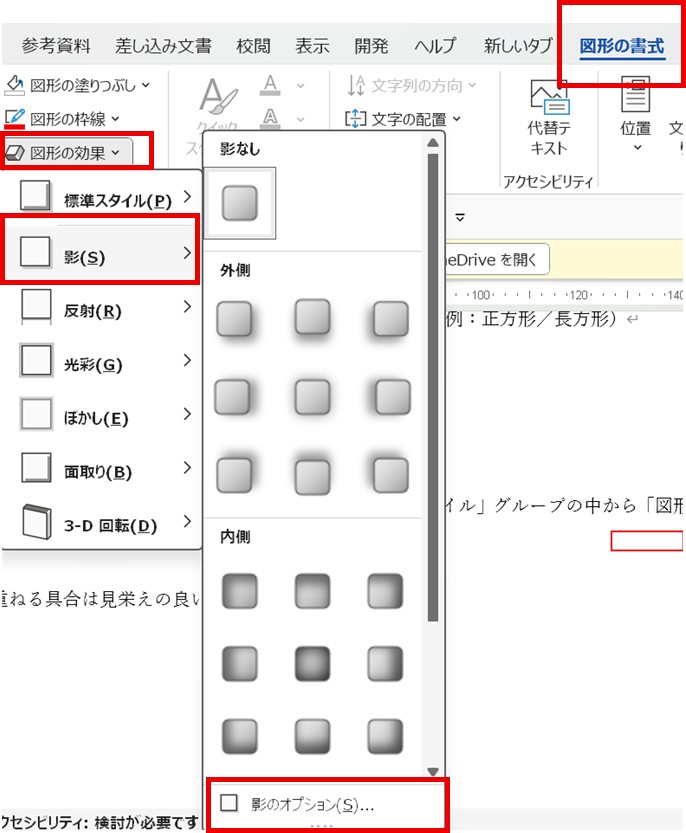 ・タブとリボンの関係 3(図形の書式・図の形式)続き ⇒ 書庫273 参照