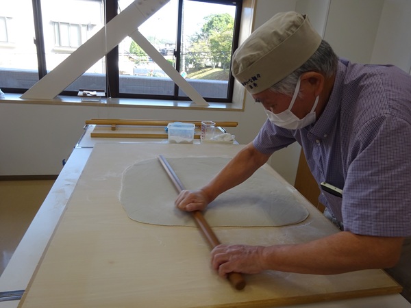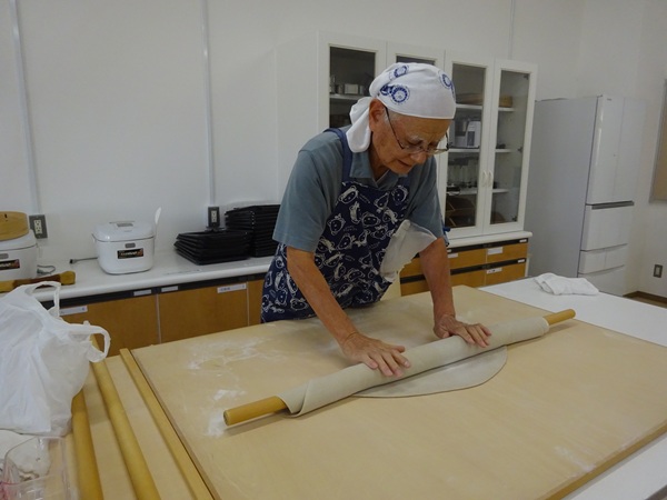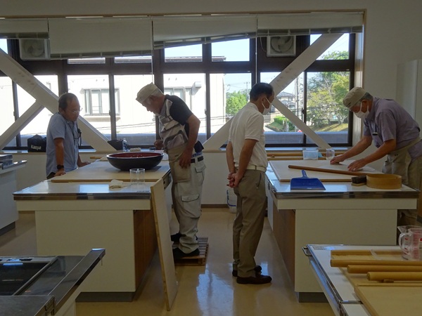 ■練習 PM13:00〜PM15:10 於:中央公民館2階料理室 ■参加者 4名 *今回、加古川市から女性2名、加西市から女性1名、 合計3名の蕎麦打ち体験者を招いて実施しました。 | ||||||||||||||
