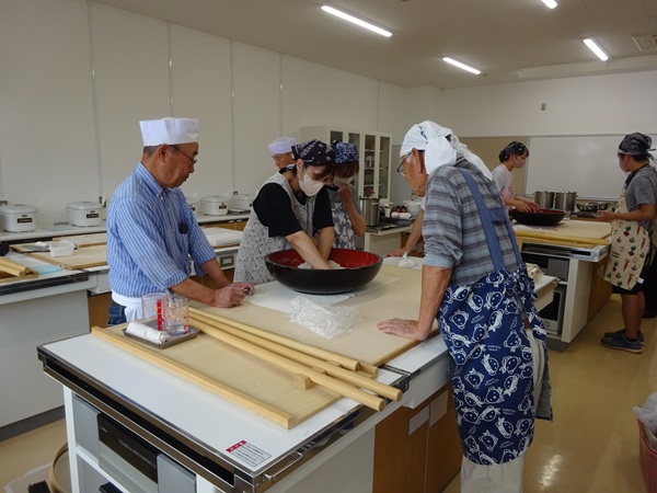 ・生徒による蕎麦打ち練習 ・蕎麦の試食 ■練習 9:00〜12:30 於:加西市民会館2階料理室 ■講師 5名 参加者 うれしの学園生涯大学3年生 10名 ■練習風景 | ||||||||||||||