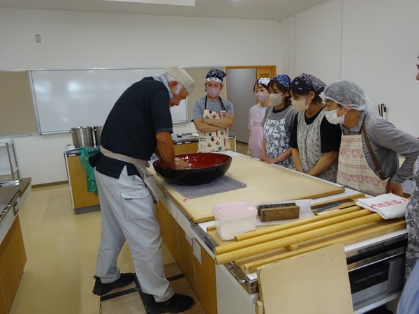 ■練習 PM13:00〜PM15:10 於:中央公民館2階料理室 ■参加者 4名 *今回、加古川市から女性2名、加西市から女性1名、 合計3名の蕎麦打ち体験者を招いて実施しました。 | ||||||||||||||